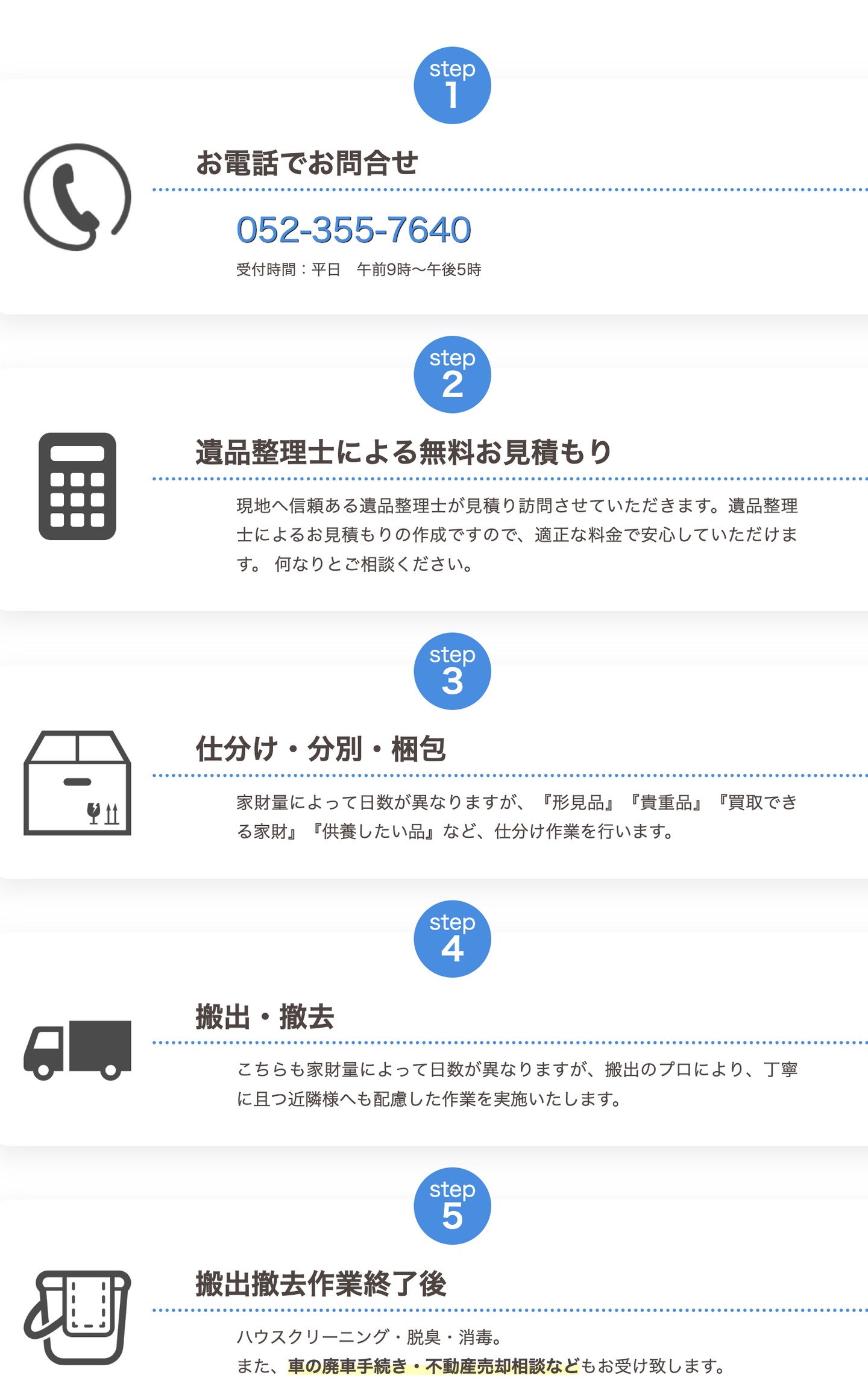 遺品整理は、専門的な知識のみならず、法規制の知識を得て活動しなければなりません。遺品整理の専門家である『遺品整理士』が在籍しているモアナクリーンに、安心してお任せください。